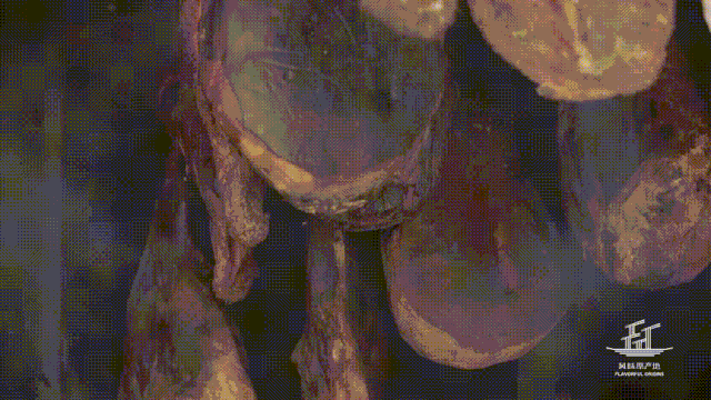 在鹽分的作用下,肌肉組織逐漸變得嚴(yán)密緊實。不過由于老窩鄉(xiāng)的冬季陰濕,常溫下的風(fēng)干可能導(dǎo)致肉類腐壞,漫長的演變過程,需要換一種方式。
